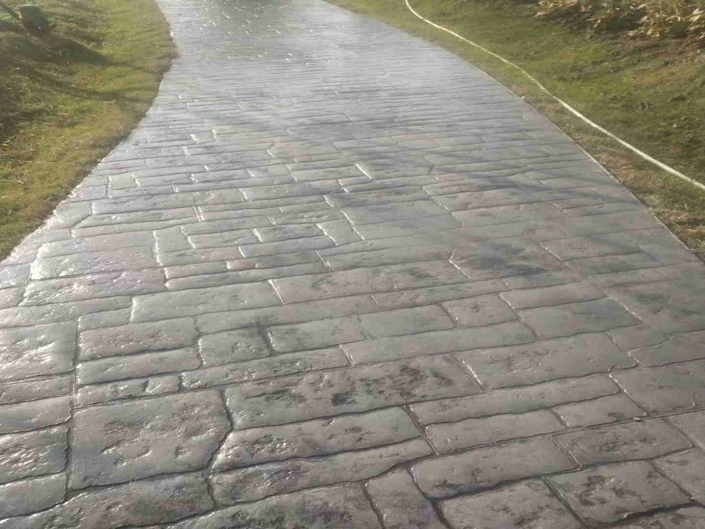 彩色混凝土壓花、壓印、壓模地坪產(chǎn)品是通過(guò)紙模、壓模工藝使其產(chǎn)生不同凡響的石質(zhì)紋理和色彩,該產(chǎn)品具有一次成型、使用期長(zhǎng)、施工便捷、修復(fù)方便、整體性強(qiáng),抗壓抗折強(qiáng)度高,不變色,不粉化,耐磨耐腐性強(qiáng)等優(yōu)點(diǎn)。同時(shí)又解決了普通彩色道板的整體性差、高低不平、易松動(dòng)、使用周期短等缺點(diǎn)。