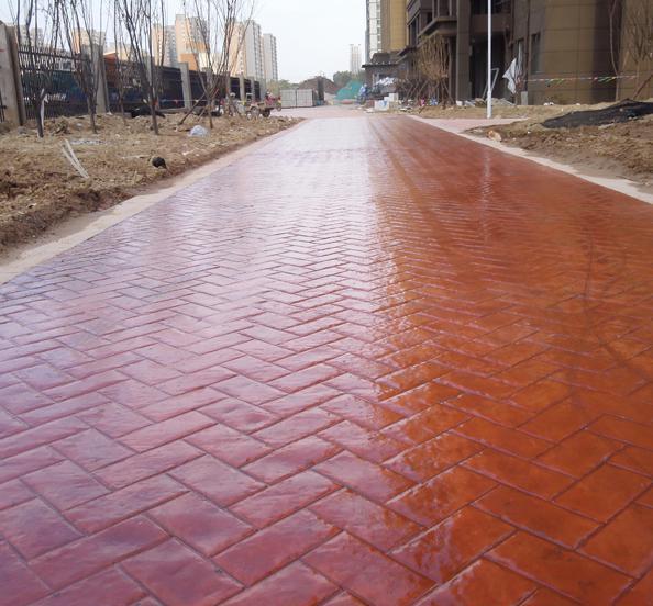 藝術(shù)壓印地坪在原有的混凝土基礎(chǔ)上展現(xiàn)出了多彩多姿的圖案模型及豐富變化的色彩,致使路面更具有耐磨、耐壓、防滑、不鼓脹、耐堿水、防塵不長青苔的特性,應(yīng)用范圍廣泛。