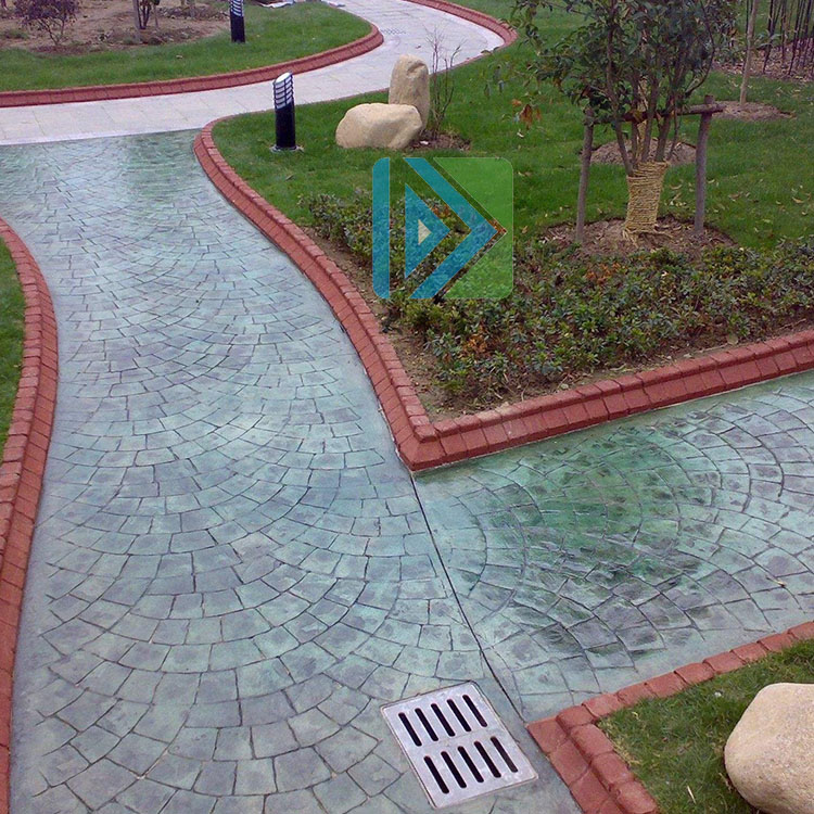 彩色藝術(shù)裝飾水泥混凝土通過壓模、整理、密封處理等施工工藝使混凝土表面產(chǎn)生不同凡響的石質(zhì)紋理和豐富的色彩效果。彩色藝術(shù)裝飾水泥混凝土硬化劑是一種即使可用的含特殊礦物骨料、無機顏料及添加劑的高強度耐磨地坪材料,其優(yōu)點是易施工、一次成型、使用期長、施工快捷、修方便、著色均勻、不易褪色等優(yōu)點。用硬化劑材料制作的彩色壓模地坪耐磨、防滑、抗凍、不起塵、易清潔、高密度、高強度、耐沖擊、高雅大方且圖案顏色立體層次強,是目前廣場、停車場、街道、公園小道、生活小區(qū)、市政道路采用的理想地坪。