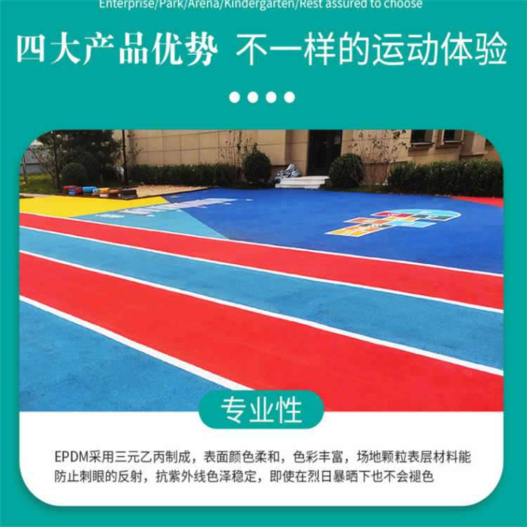 那什么是三元乙丙橡膠呢?其實(shí)就是乙烯、丙烯和少量的非共軛二烯烴的共聚物。主鏈的組成是穩(wěn)定的飽和烴,側(cè)鏈含有不飽和酸降,其優(yōu)點(diǎn)很多,耐熱、耐臭氧、耐老化等性能卓越,一般學(xué)校跑道、游樂場(chǎng)和體育項(xiàng)目運(yùn)動(dòng)場(chǎng)地基本上都是這種材料,此材料具有耐磨、舒適、高彈、防滑等特點(diǎn)。