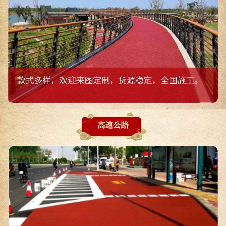 工期短。彩色防滑路面常用顏色為天藍(lán)、酒紅、葉綠、杏黃等