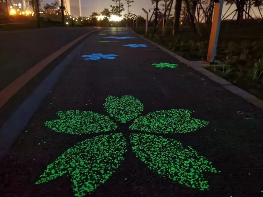 針對綠道的發(fā)展,近些年我們開發(fā)了一系列的發(fā)光碎石、發(fā)光鵝卵石和發(fā)光標(biāo)志,還針對綠道路面開發(fā)了專用彈性體發(fā)光顆粒等園林綠道用的長余輝發(fā)光產(chǎn)品?,F(xiàn)在已經(jīng)在全國范圍鋪開,效果也不錯,接受度是越來越高了。