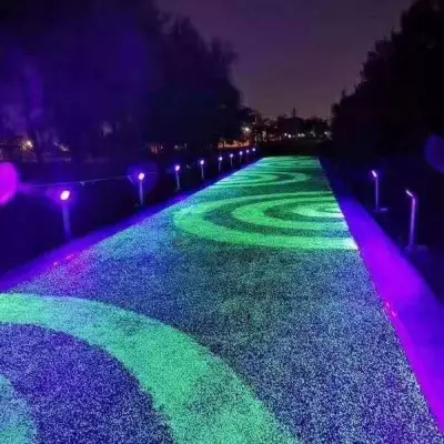 熒光膠粘石,也可叫做發(fā)光膠粘石,目前市場常見以有機(jī)樹脂類自發(fā)光產(chǎn)品為主,比如:亞克力發(fā)光石、環(huán)氧發(fā)光磚等以樹脂作載體的自發(fā)光材料,易老化黃變、不耐磨損,且目前尚未有理想粘合劑,易脫落,導(dǎo)致發(fā)光壽命短;