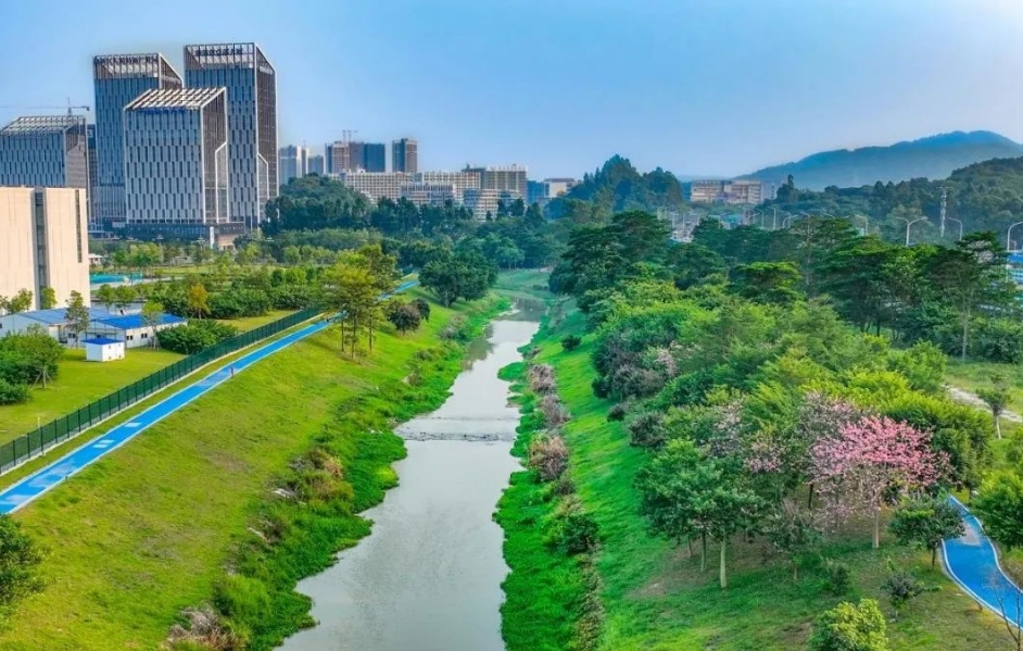 碧道功能彰顯,以水興城產(chǎn)城融合。黃埔區(qū)以碧道建設(shè)為引領(lǐng),統(tǒng)籌“陸地-河岸-水中”構(gòu)建生態(tài)空間廊道,建設(shè)綠色生態(tài)駁岸,打造濱水濕地,建立多元慢行系統(tǒng),全面提升濱水空間人文、生態(tài)、功能品質(zhì)。南崗河流域建成碧道21.6公里,達(dá)到“水清、岸綠、景美”的目標(biāo),20幾公里的生態(tài)駁岸及兩岸生態(tài)空間成為南崗河的一大特色,深受群眾的歡迎。依托優(yōu)質(zhì)的水資源和健康宜居的水環(huán)境,南崗河沿岸吸引了眾多高科技人才,孵化了上千家科技企業(yè),流域內(nèi)約1300多家大中型企業(yè)和黃埔實(shí)驗(yàn)室等8個(gè)國(guó)家級(jí)創(chuàng)新產(chǎn)業(yè)園入駐,成為廣州東部最具活力的科技創(chuàng)新帶。城市蓬勃發(fā)展、產(chǎn)業(yè)轉(zhuǎn)型升級(jí)、人民安居樂(lè)業(yè),是水生態(tài)環(huán)境治理成效的最好印證,也是以水為紐帶,促進(jìn)水、產(chǎn)、城融合發(fā)展的真實(shí)寫(xiě)照。