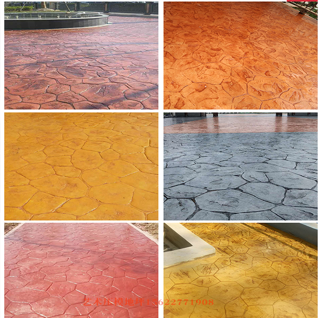 2、材料準備。材料準備分兩部分:一是基礎(chǔ)部分,即自拌混凝土需做好砂石料、水泥進場,架設(shè)好攪拌機等。如是商品混凝土,可與攪拌站確定好標號以及澆筑日期以及澆筑的速度。二是面層材料。開工前至少一周從廠家處購買好大來彩色強化料、脫模粉、保護劑與及使用什么花紋的模具等。